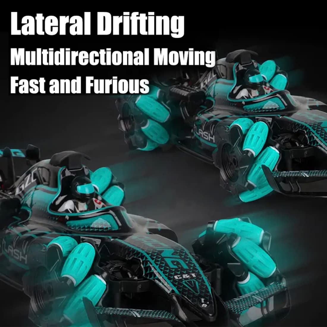 Wembley Rechargeable F1 Super Drifter 360° Rotation Remote Control Smoke car with LED Lights | 1:14 Fog Stunt High Speed 25KM/H Race Remote Control Fast Stunt Toy Car for Kids - Blue