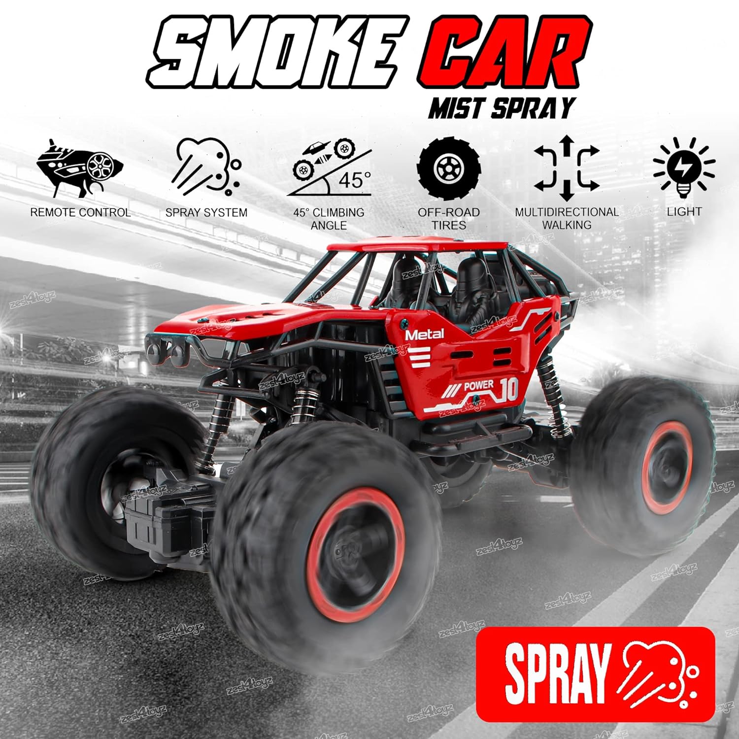 Zest 4 Toyz Remote Control Car for Kids with Mist Smoke Spray Function 2 WD Monster Truck Rock Crawler Climbing RC Toy Vehicle Car for Boys and Girls-Red
